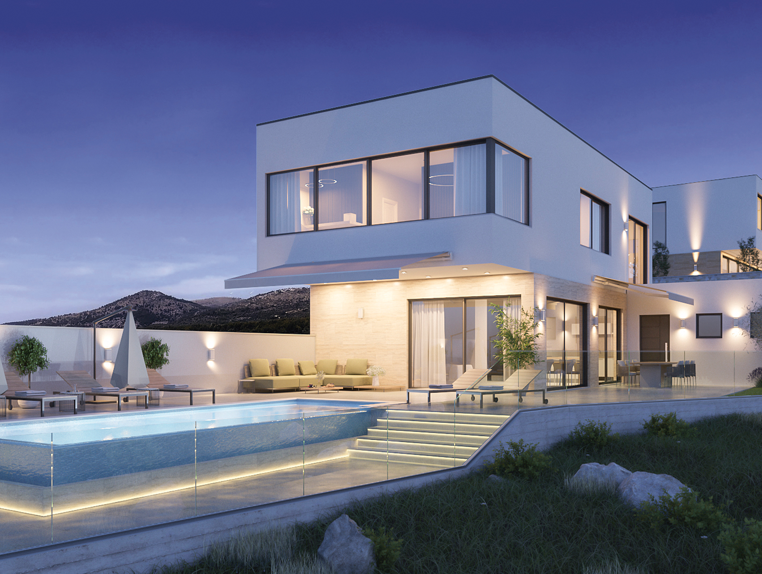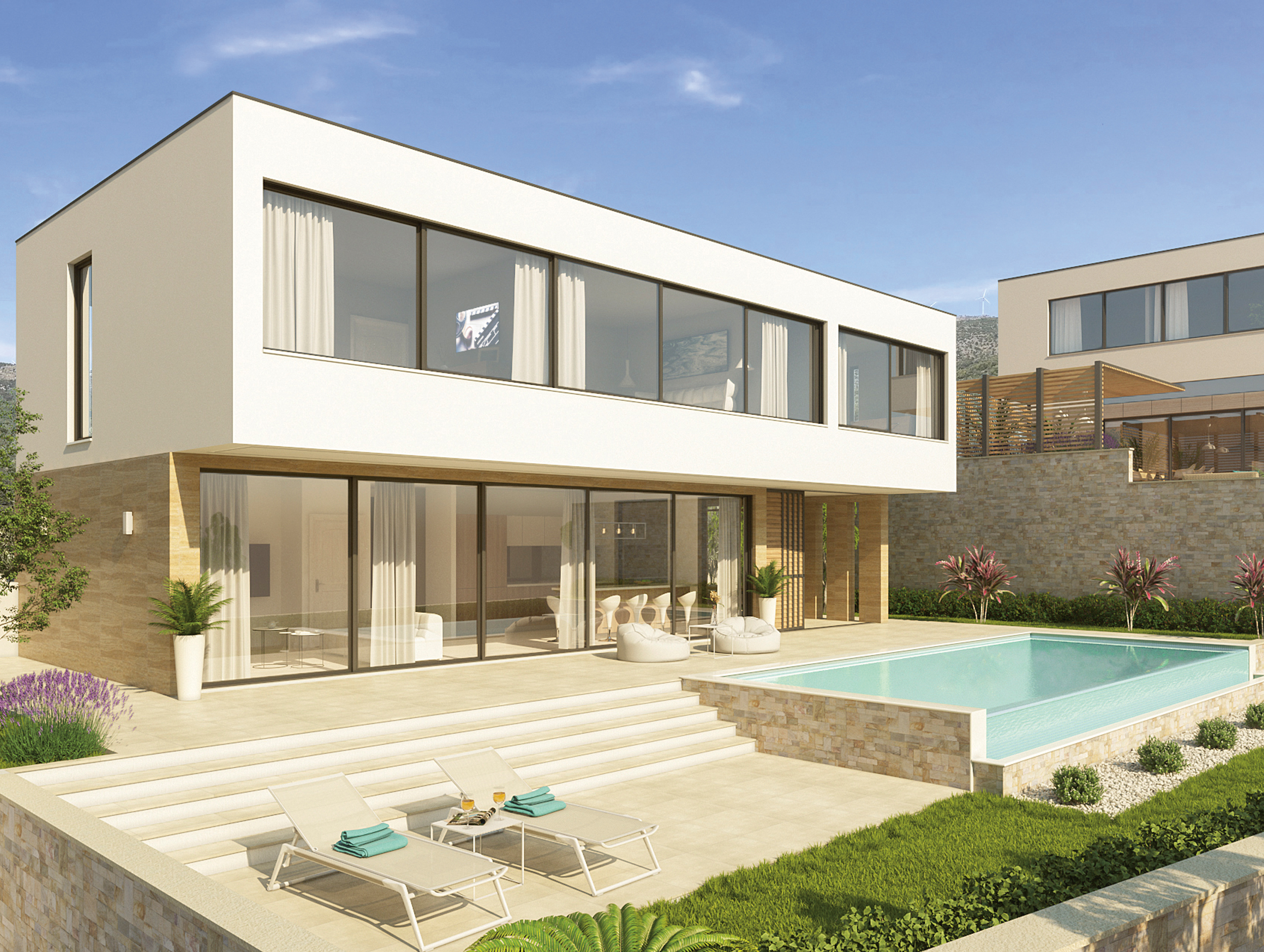 Jede Villa ist klimatisiert und mit einer Fussbodenheizung ausgestattet. Klima und Heizung werden durch eine Luft-Wasser-Wärmepumpe betrieben. Das Projekt wir von einer deutschen Baufirma vor Ort realisiert. Falls Sie Ihre Villa vermieten, haben Sie die Möglichkeit, unsere deutschsprachige Hausverwaltung zu nutzen, die sich um die professionelle Betreuung Ihrer Gäste kümmert.